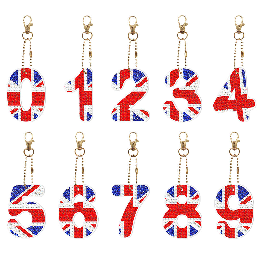 10pcs Number 0-9 Crystal Diamond Painting Keychain DIY Double-sided Full Drill Key Ring Pendant Women Bag Accessories