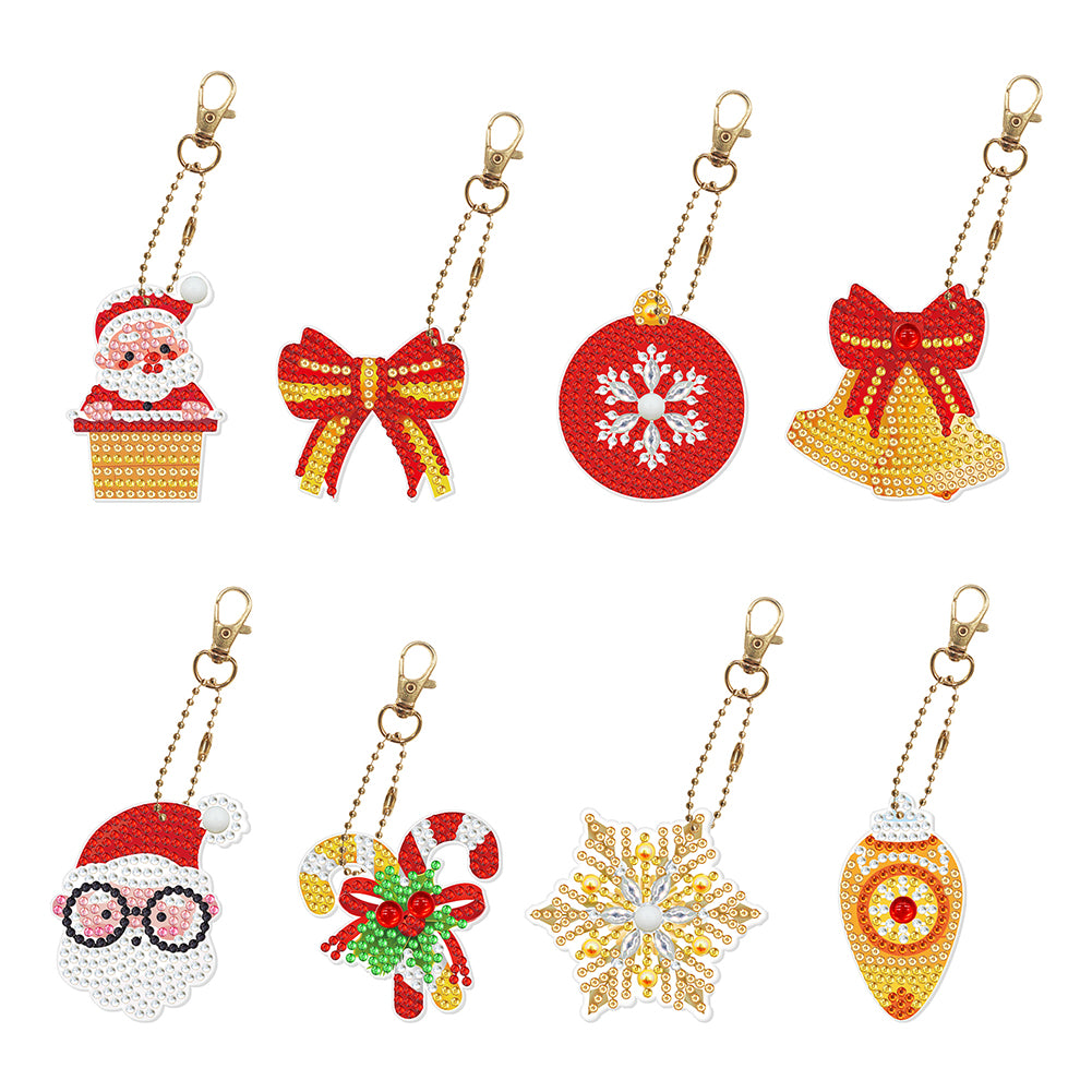 8pcs DIY Acrylic Full Special Shaped Drill Diamond Christmas Keychain Kits