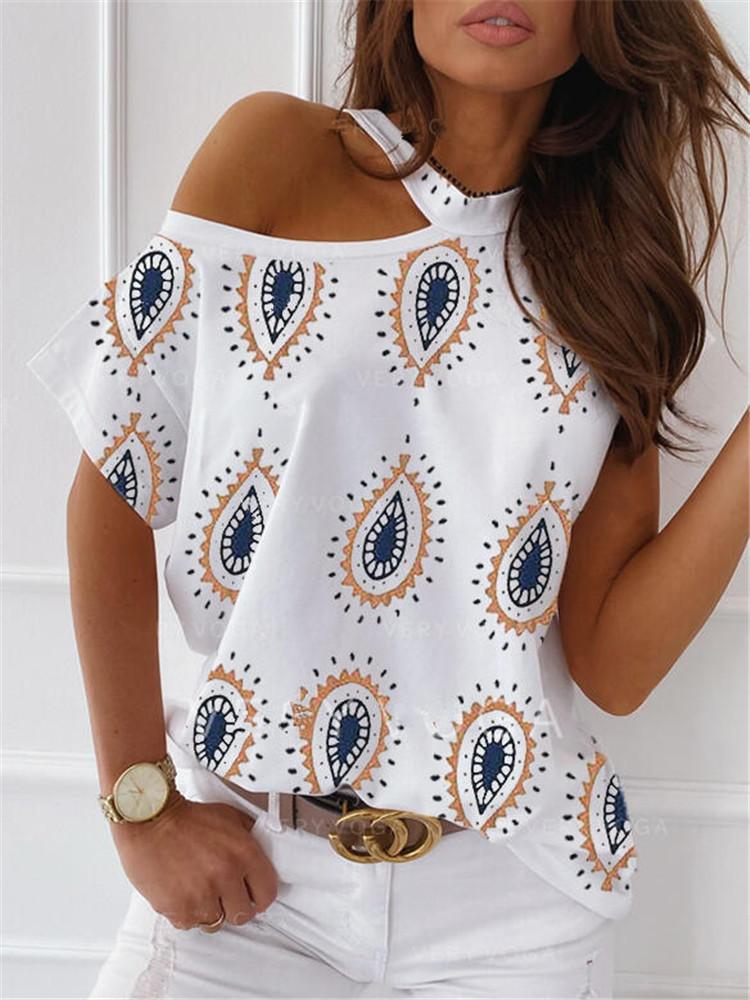 Dew Drop Print Cold Shoulder Casual T-shirt